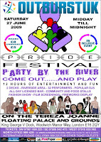 The third annual Outburst UK Pride Festival takes place on Saturday, 27 June 2009 on the banks of the Thames River in east London close to London city airport and with breathtaking views of London.